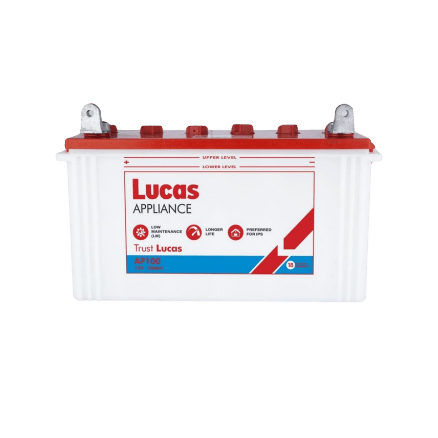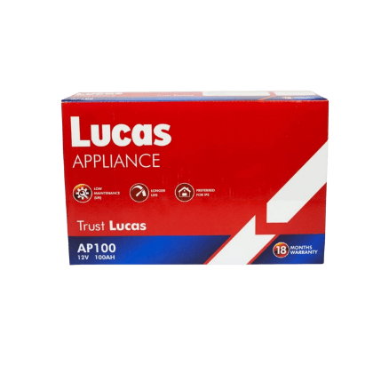 - Lucas deep cycle AP- 100 Ah battery is specially designed for use in IPS & UPS. It is a 12 volt charged battery and has a 100 AH capacity with a flat plate. Easily Serviceable and Auto Reset Feature.